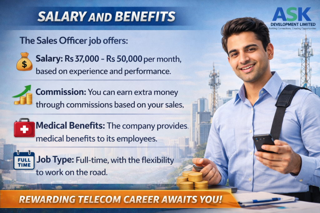 The Sales Officer role at ASK Development Limited is a great opportunity for anyone wanting to start a sales career in telecom. With a good salary, commissions, and benefits, it offers both financial and professional growth. If you’re motivated and goal-oriented, apply for the Sales Officer position today and begin your career at ASK Development Limited!